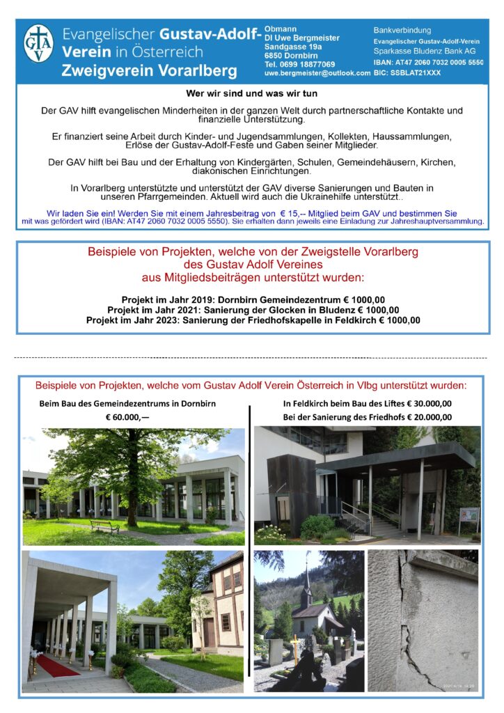 Der Gustav-Adolf-Verein setzt sich seit vielen Jahren für die Unterstützung evangelischer Gemeinden in Minderheitensituationen ein, auch über Landesgrenzen hinweg. Wir sind dem Verein besonders dankbar für die großzügige Hilfe beim Bau unseres Gemeindezentrums. Ohne diese Unterstützung wäre vieles nicht möglich gewesen.